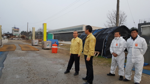 또한 살수차와 공동방제단 5개반을 동원 매일 2회씩 도로변과 농장 진입로 소독하는 등 선제적 방역을 실시하였다.
