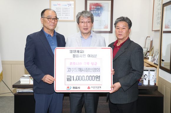 고추도매시장 번영회는 22일 정읍시청을 방문해 코로나 19 극복을 위해 사용해 달라며 성금 100만원을 전달했다.