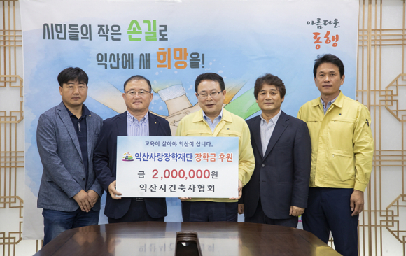 익산건축사협회는 지난 3일 익산시청을 방문해 코로나19로 경제적인 어려움을 겪는 학생들을 위해 익산사랑장학재단에 장학금 200만원을 기탁했다.