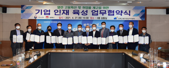 김제시는 지난 27일 지역인재 채용 확대와 지역 상생발전을 위해 지역 내 특성화고등학교 및 관내 11개 기업과 기업 인재육성 업무협약(MOU)를 체결했다.