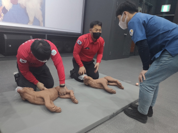 반려동물 1,500만 시대에 4가구 중 1가구는 반려동물과 함께 생활한다는 농림축산식품부 발표에 따라 전북119안전체험관은 도청 1층 생활의 과학화 안전체험장에서 반려동물 심폐소생술 교육을 시범운영을 했다.