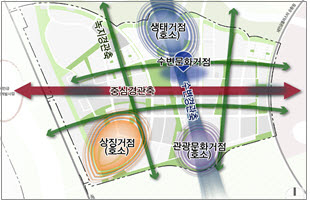 또한, 수변도시 전체를 중.저밀로 계획하고, 도시기능을 7개의 거점구역으로 구분해 각 거점을 공원?녹지축으로 연결하는 등 공원.녹지 비율을 36%로 구성해 쾌적한 정주환경을 제공할 예정이다.