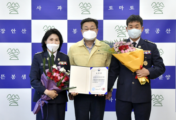장수군 의용소방대연합회가 코로나19 대응 방역점검, 마스크 및 손소독제 등 방역물품 배부에 기여한 단체나 개인에게 수여하는 행정안전부장관 표창을 받았다.