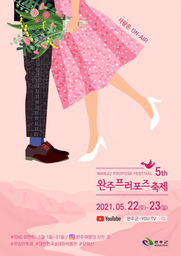 30일 완주군은 5월을 완주에서 사랑을 나누는 달로 정하고 1일부터 31일까지 한 달 동안 온라인으로 프러포즈축제를 개최한다고 밝혔다.