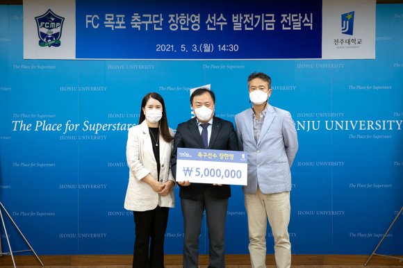 전주대는 3일 FC목포 장한영 선수(22/경기지도학과 4년)가 모교에 발전기금 500만원을 전달했다고 밝혔다.