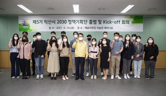 14일 시에 따르면 예술의전당 세미나실에서 정헌율 익산시장과 정책기획단 25명 등 총 30여명이 참석한 가운데 ‘제5기 2030 정책기획단 kick–off’ 발대식을 개최했다.