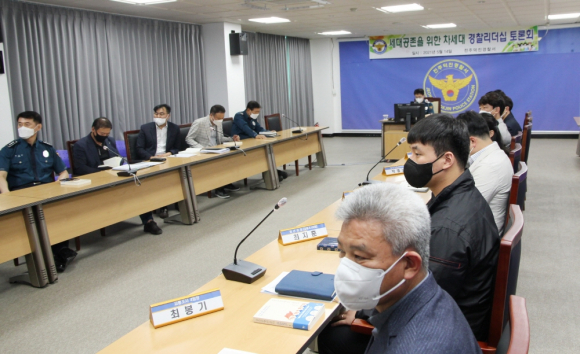 이날 토론회에는 경찰서장 이하 각 과·계장 및 청년경찰 등 20여명이 참석한 가운데 90년대생 이하 청년 경찰과 계·팀장이 현장에 참석, 지구대 파출소는 화상회의로 동시에 진행됐다.