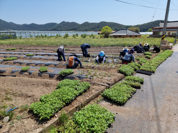 부안군 보안면 만화마을은 지난 13일, 익산시 농업기술실용화재단 30여명이 참여한 가운데, 약용작물중 하나인 단삼을 만화마을 일대 4,000㎡에 식재하였다.