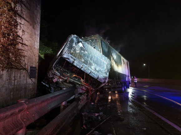 새벽 익산 호남고속도로서 화물차 가드레일 추돌 후 불
