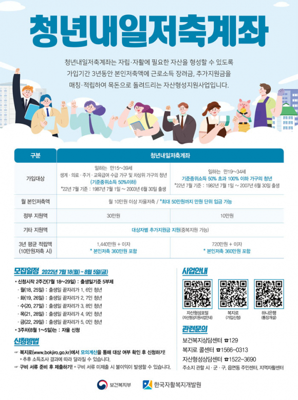 임실군은 일하는 청년의 자립 자활에 필요한 자산을 형성할 수 있도록 ‘청년내일저축계좌’신규가입자를 오는 7월 18일부터 8월 5일까지 모집한다.
