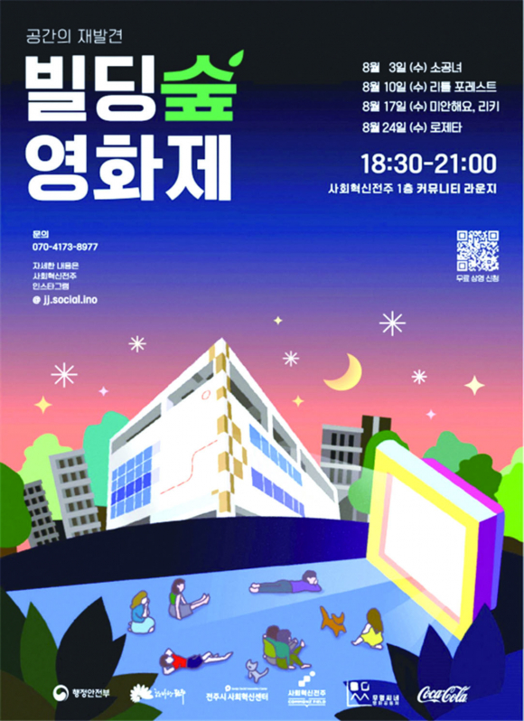 영화 상영은 사회혁신전주 공간 활성화 프로그램 중 하나인 ‘공간의 재발견-빌딩숲 영화제’라는 프로그램으로 기획됐다. 영화를 통해 시민들에게 공간에 머무는 경험을 제공하고 소통과 협력의 공간 활용 가능성을 제시하는 게 목적이다.