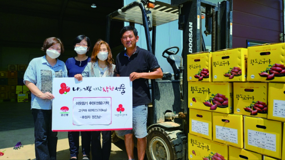 김원교 검산동장은 “선뜻 나눔을 실천해 주신 정진남 대표에게 감사드리고, 후원해 주신 고구마는 대표님의 따뜻한 마음이 함께 전달될 수 있도록 정성을 다하겠다”고 말했다.