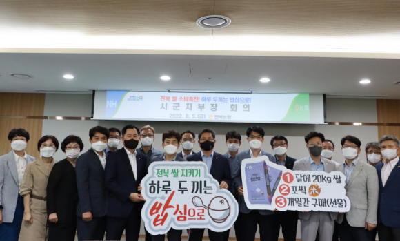 전북농협(본부장 정재호)은 5일 농협전북본부에서 쌀 소비촉진 및 농정관련 당면현안 전달을 위한 시군지부장 회의를 개최했다.