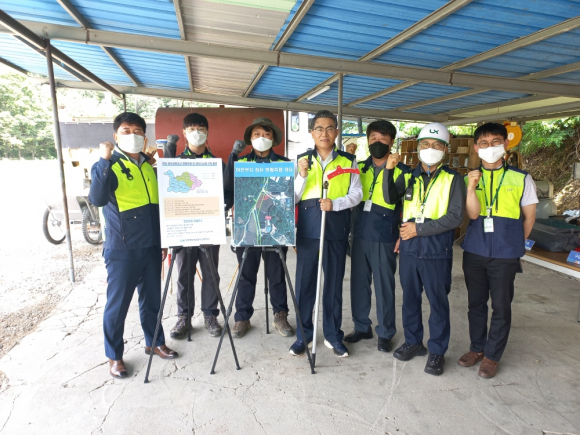 이에 앞서 김 사장은 4일 경북 상주시 개운동 일대 현장을 방문해 하천 측량 주변에 설치돼 있는 전기울타리를 새로운 위험요소로 인지하고, 감전사고 예방을 위해 안전 확보를 당부했다.