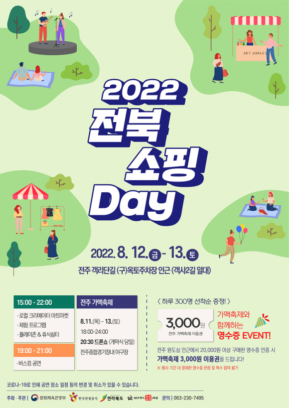전라북도문화관광재단은 오는 12일과 13일 이틀간 객리단길 (구)옥토주차장 인근에서 '2022 쇼핑관광 활성화' 사업의 일환으로 ‘전북 쇼핑 Day’를 개최한다고 밝혔다.