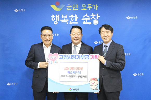 최영일 순창군수도 “순창군이 고향이 아님에도 고향처럼 여기고 기부에 동참해 주신 한태문 대표께 진심으로 감사드린다”며 “보내주신 소중한 마음을 잊지 않고 군민 모두가 웃을 수 있는 행복한 순창군 건설을 위해 더욱 노력하겠다”고 화답했다.