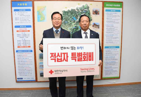 완주군이 대한적십자사 전북지사에 적십자 특별회비를 기탁했다. <사진>