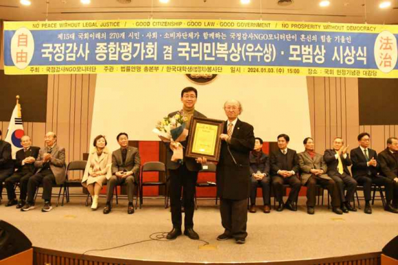 법률소비자연맹 주관 ‘국정감사 NGO모니터단’은 시민단체들과 전국 65개 대학의 청년 대학생, 각 분야 전문가들이 국정감사의 전 과정을 종합 모니터하고, 정밀한 평가를 통해 ‘21대 국회 4차년도(2023) 국정감사 국리민복상(우수국감의원)’을 최종 선정한다.