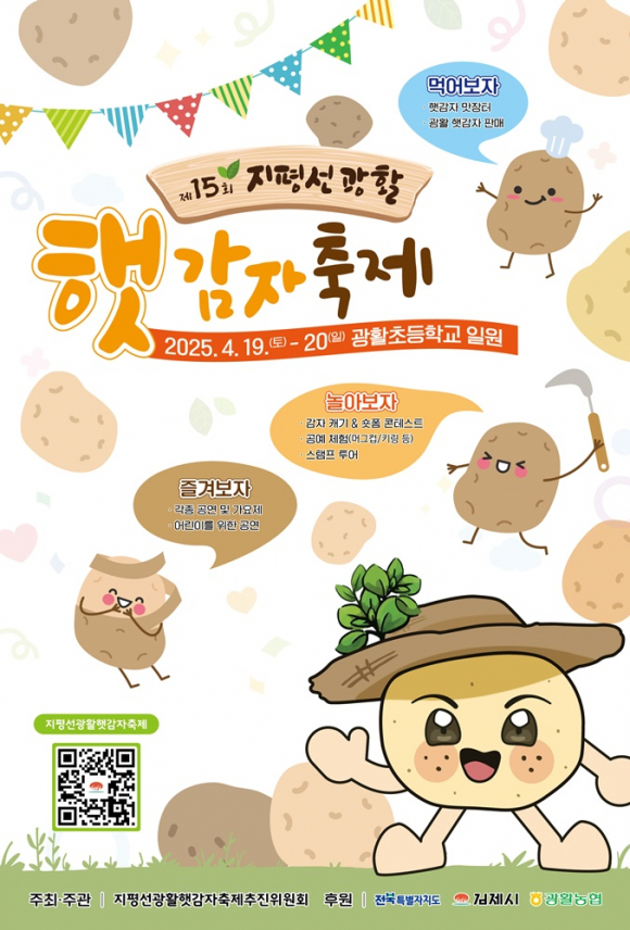 지평선광활햇감자축제 추진위원회(위원장 임영용)는 ‘제15회 지평선광활햇감자축제’를 오는 4월 19일과 20일, 양일간 김제시 광활면 광활초등학교 일원에서 개최한다고 밝혔다.
