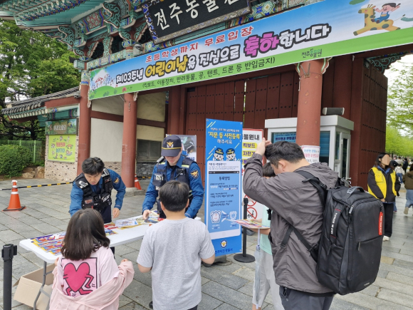 전주덕진경찰서(서장 김인병) 덕진지구대에서는 5월 가정의달을 맞이해 동물원 등에서 가족단위 나들이객의 아동 등을 상대로 실종예방을 위해 사전지문등록 안내를 적극 홍보 활동에 나섰다.