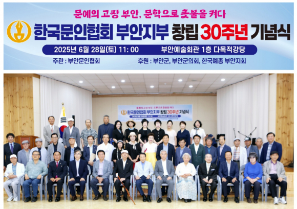 한국문인협회 부안지부는 지난달 28일 부안예술회관에서 창립 30주년 기념식 및 제4회 부안 향토문학상 시상식이 성황리에 개최했다.