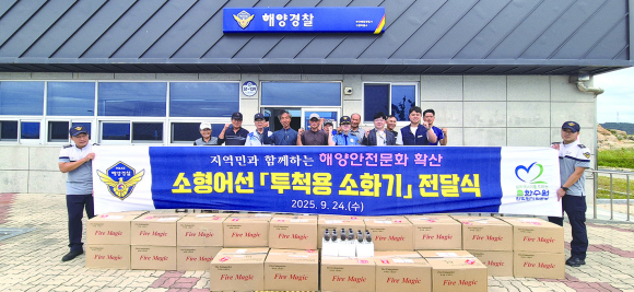 해경에 따르면 이번 사업은 지역사회 상생 협력의 일환으로 추진됐으며, 총 400개의 소화기가 200여 척의 어선에 전달된다.
