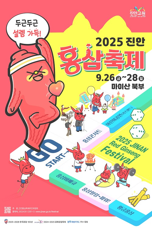 한편,‘두근두근 설렘 가득! 2025 진안홍삼축제는 홍삼 깍두기 만들기 등 다채로운 체험, 각종 공연, 다양한 먹거리를 통해 관람객과 만난다.