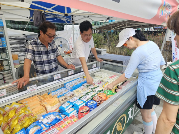 임실엔치즈클러스터, 임실 축협 및 지역 농가 15개 업체가 참여해 치즈와 유제품, 육류, 전통 장류, 한과 등 100여 품목을 시중 가격보다 10~20% 저렴한 가격에 선보인다.