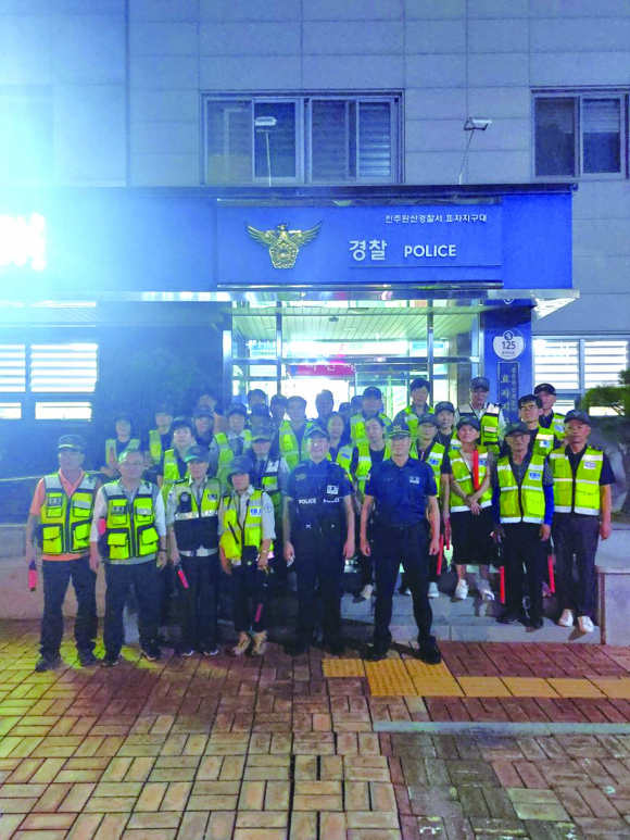전주완산경찰서 효자지구대가 추석 연휴를 앞두고 지역 자율방범대와 함께 합동순찰에 나섰다.