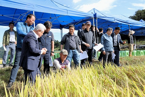 황인홍 무주군수는 “이 자리는 다수확 품종의 공공비축미 제외 정책에 따른 후속 품종의 보급이 절실한 상황에서 우리 지역에 적합한 벼 품종을 선정하고 재배 기술 공유, 생산성과 품질 개선, 기후변화 대응력을 강화한다는 측면에서 매우 중요한 의미가 있다”라며