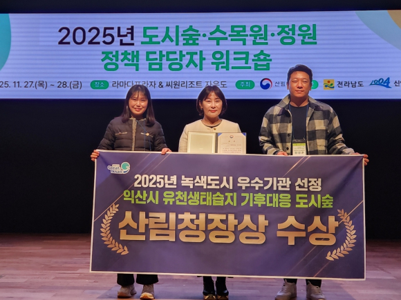 익산시는 산림청 주관 '2025년 녹색도시 우수사례-기후대응도시숲 분야'에서 유천생태습지 기후대응도시숲의 우수성을 인정받아 산림청장상을 받았다.