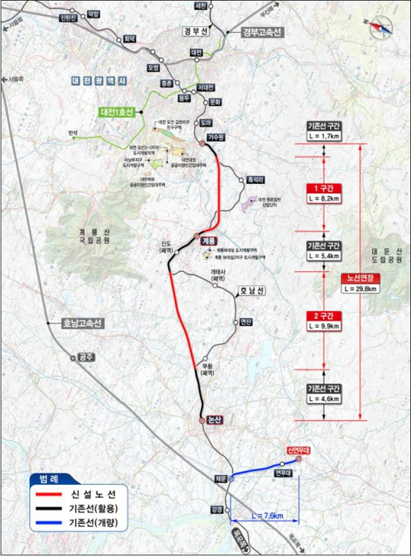 대전 가수원역에서 논산역까지의 굴곡진 노선을 직선화하고, 기존 노후 시설도 정비해 시속 250㎞의 고속 주행이 가능한 선로로 개량하는데 총사업비 약 9200억원이 투입된다. 신설되는 구간은 18.1㎞이며, 기존 노선이 활용되는 길이는 11.7㎞다.