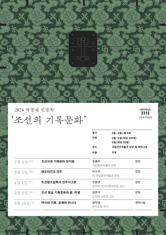 국립전주박물관은 2월부터 6월까지 총 5회에 걸쳐 문화 강좌 ‘박물관 인문학’을 운영한다고 밝혔다. 이번 강좌는 조선시대 기록문화의 가치와 의미를 조명하고, 시민들에게 예술·인문 분야의 평생학습 기회를 제공하기 위해 기획됐다.