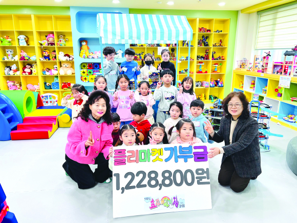 전주 효자어린이집이 아이들과 학부모, 교직원이 함께 마련한 바자회 수익금을 지역 나눔 사업에 기탁했다.