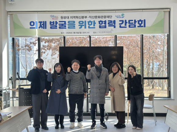 익산문화관광재단은 9일 오후 재단 회의실에서 원광대학교 지역혁신본부와 함께 지역상생 의제 발굴을 위한 간담회를 열고, 지역 문화관광 활성화와 지속 가능한 협력 모델 구축 방안을 논의했다.