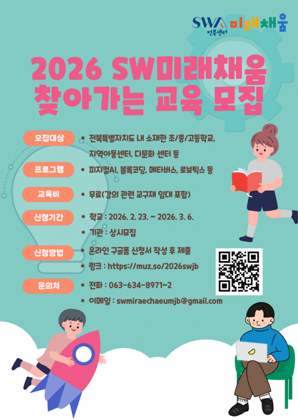 전북테크노파크 SW미래채움 전북센터는 2026년도 ‘찾아가는 AI·SW 교육’ 교육생을 모집한다고 23일 밝혔다.