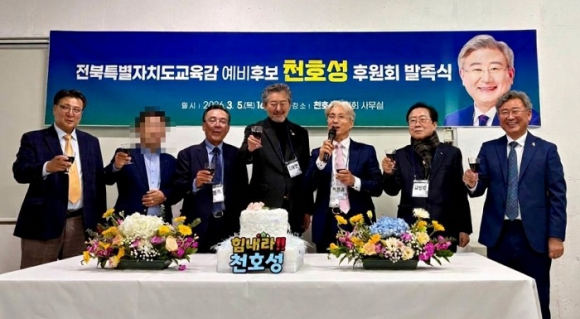 천호성 전북교육감 예비후보 후원회 사무실 개소식이 지난 5일 전주시 덕진구 백제대로에 마련된 후원회 사무실에서 열렸다. 이날 행사에는 교육계 인사와 지역 인사들이 참석해 전북교육의 변화와 미래를 위한 뜻을 함께 나눴다.