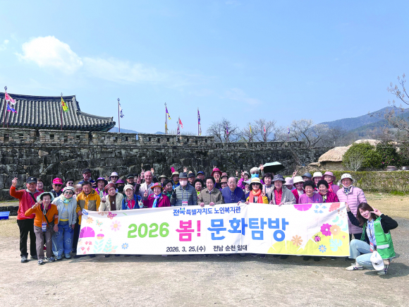 전북특별자치도노인복지관은 25일 복지관 이용 어르신 100명을 대상으로 전라남도 순천과 구례 일대에서 ‘2026년 봄! 문화탐방’을 실시했다고 밝혔다. 이번 행사는 어르신들의 여가 활동을 확대하고 정서적 안정과 활력을 높이기 위해 마련됐다.