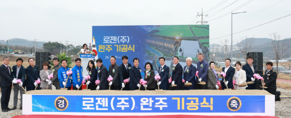 전북자치도는 1일 완주 테크노밸리 제2일반산업단지에서 로젠 물류터미널 기공식이 열렸다고 밝혔다. 이날 행사에는 김종훈 경제부지사를 비롯해 유희태 완주군수, 김동주 로젠 대표이사 등 주요 관계자와 주민 200여 명이 참석했다.