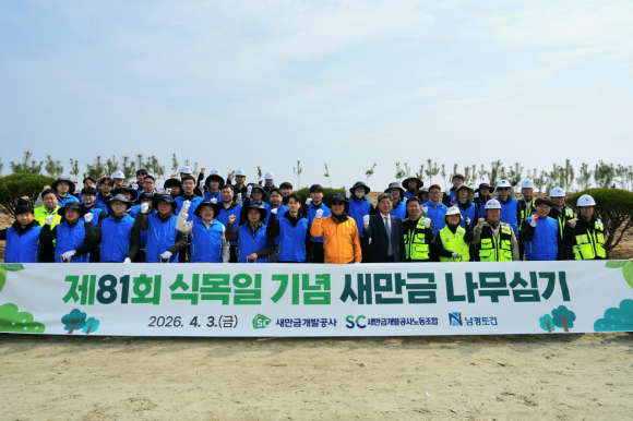 새만금개발공사(사장 나경균, 이하‘공사’)는 제81회 식목일을 맞아 수변도시 첫 분양을 기념하는 식목행사를 노·사 공동으로 4월 3일(금)에 개최하였다고 밝혔다.