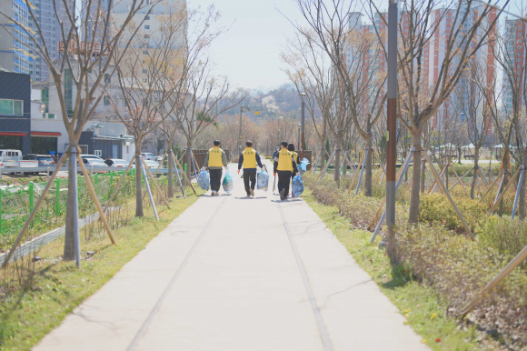 군산시 수송동 주민자치위원회(위원장 김민철)는 4월 8일 군산 철길숲 일원에서 마라톤 행사 이후 남은 쓰레기를 수거하고 쾌적한 보행 환경을 조성하기 위해 주민자치위원 등 20여 명이 참여한 환경정화활동을 실시했다.